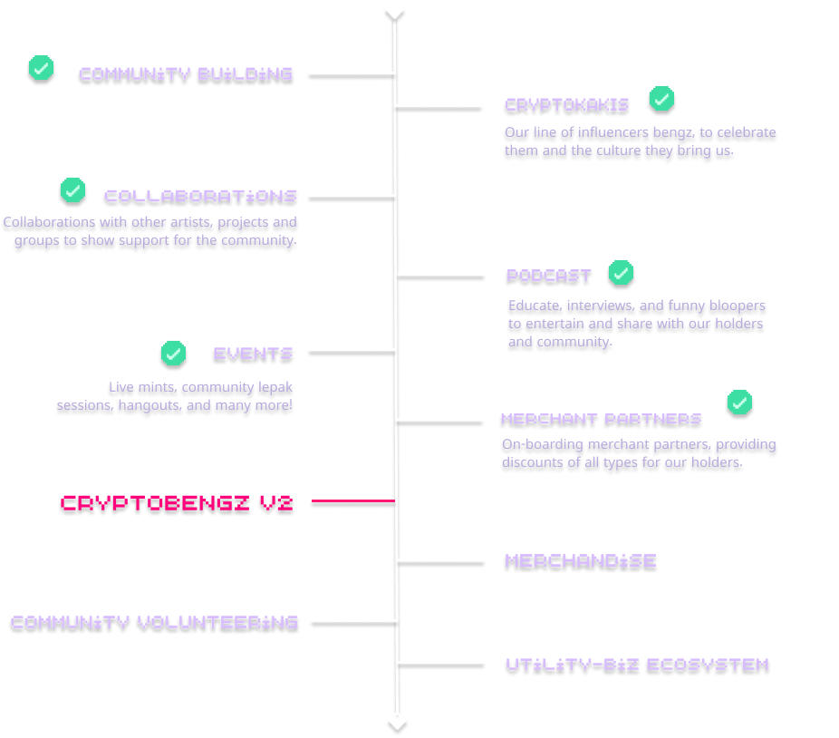 A - ??? [error error] - supply of generative CryptoBengz Is here! Representing our little red dot. Cryptobengz GEN Z is the Grand Collection by Team Cryptobengz of this local brand. Our collection includes utility-enabled collectIbles that depict a variety of local Singaporean culture-inspired traits as seen through the team's eyes. Members of the Cryptobengz Genesis, Cryptobengz GEN Z and Cryptokakis will have access to exclusive airdrops, merchandise drops, merchant partnerships, and community events.
